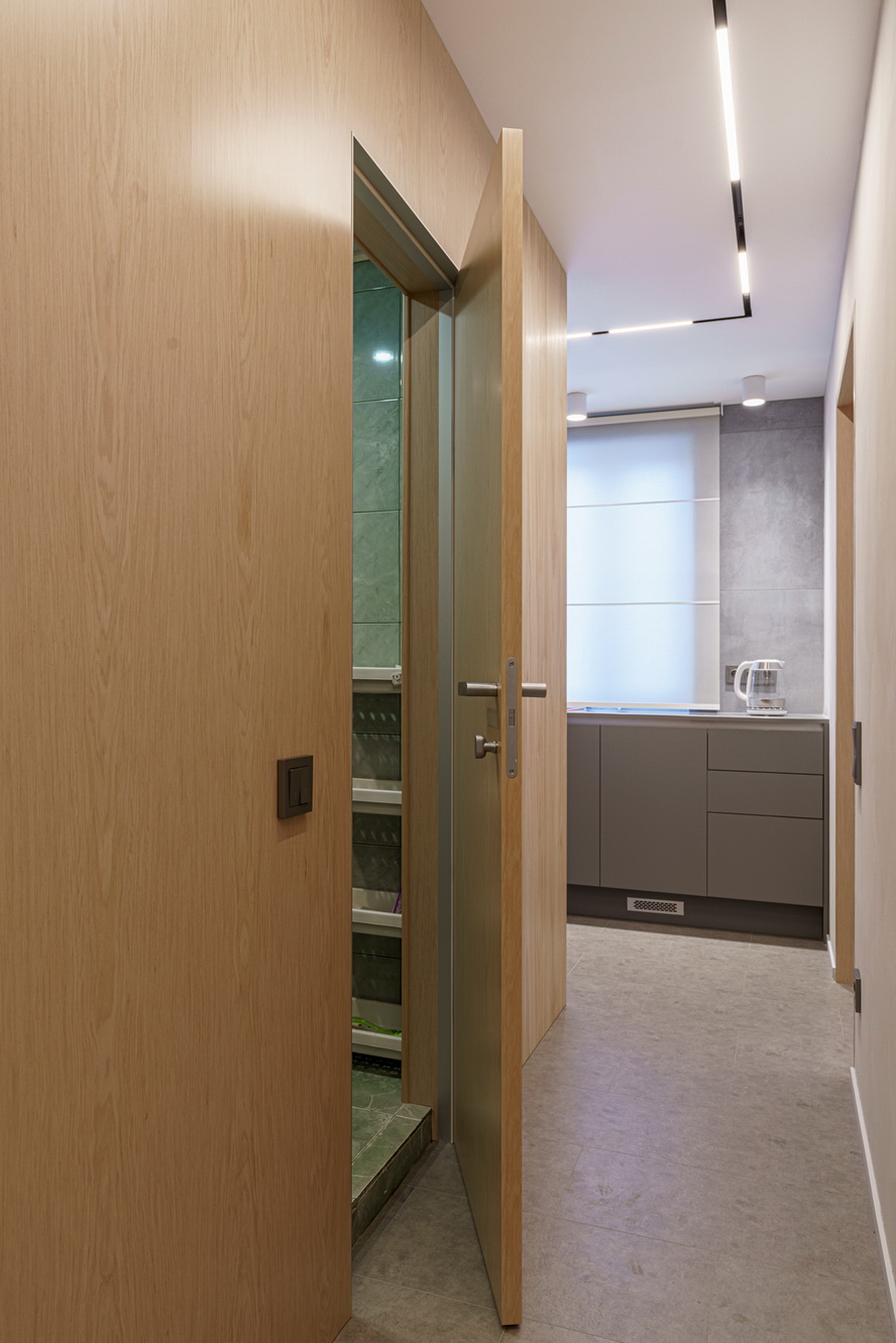Дизайнеры Диана Карнаухова и Виктория Лукьянова продумали до мелочей буквально всё. На полу — кварцевый ламинат из коллекции Fargo Stone Горный Хрусталь JC 11013. На полу нейтрального цвета создали интерьер из терракотово-серой палитры с добавлением сиреневого.